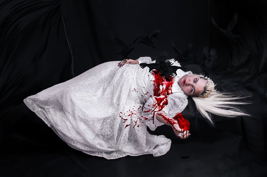 The ravens, with their stark contrast against the muted backdrop, symbolize the relentless pursuit of anguish that accompanies heartbreak, creating an atmosphere of profound despair.