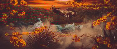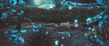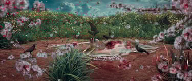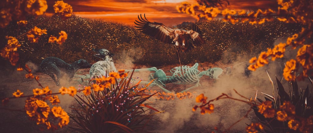 I decided to use the various seasons of the year, because during decomposition, in addition to its various stages, it also goes through nature's own process and undergoes changes with it. I even portrayed day and night to dramatize the theme more, but also to make it more “beautiful”, due to it being a rather macabre theme.